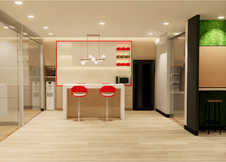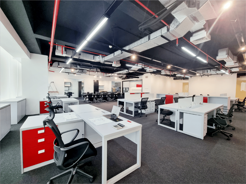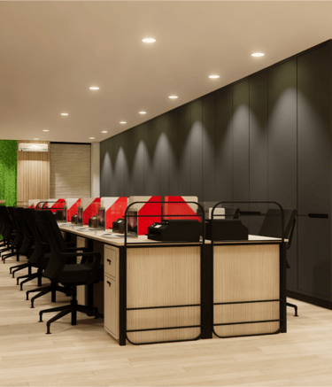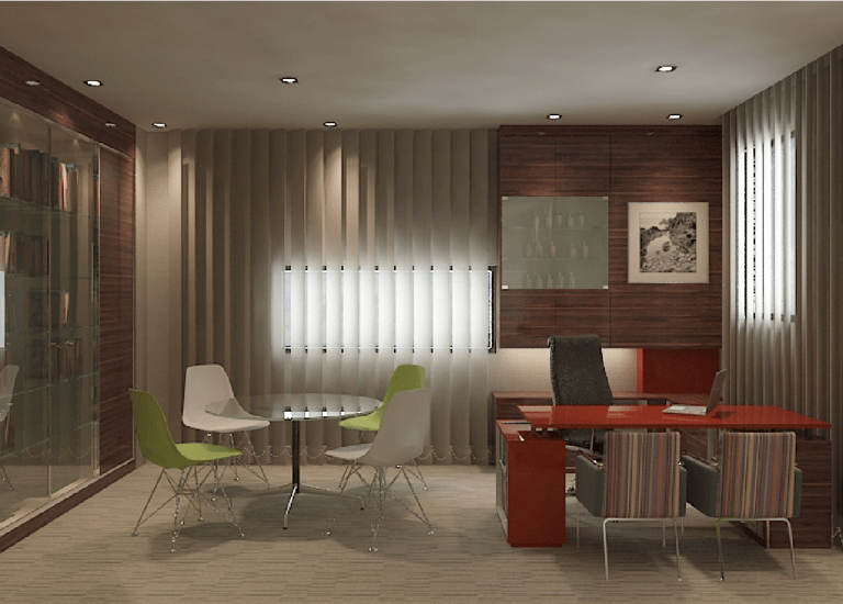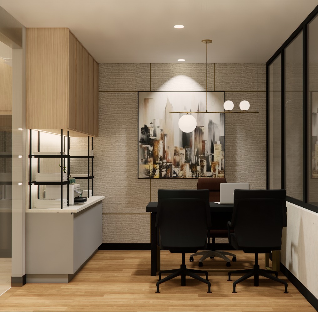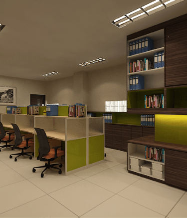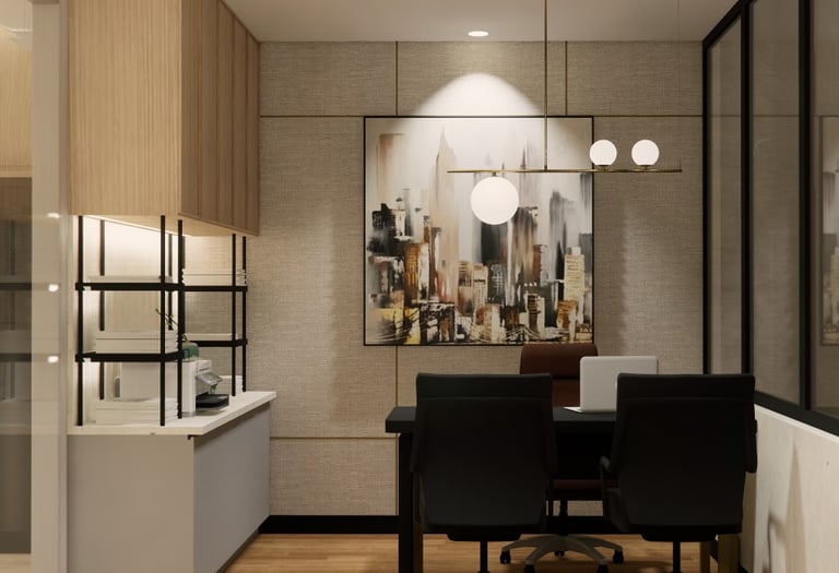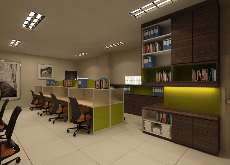 Desain ruang kerja yang fungsional dan nyaman, memaksimalkan produktivitas dengan penataan ruang yang efisien, profesional, dan sesuai dengan identitas perusahaan.
