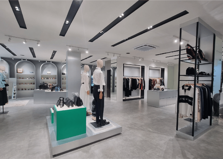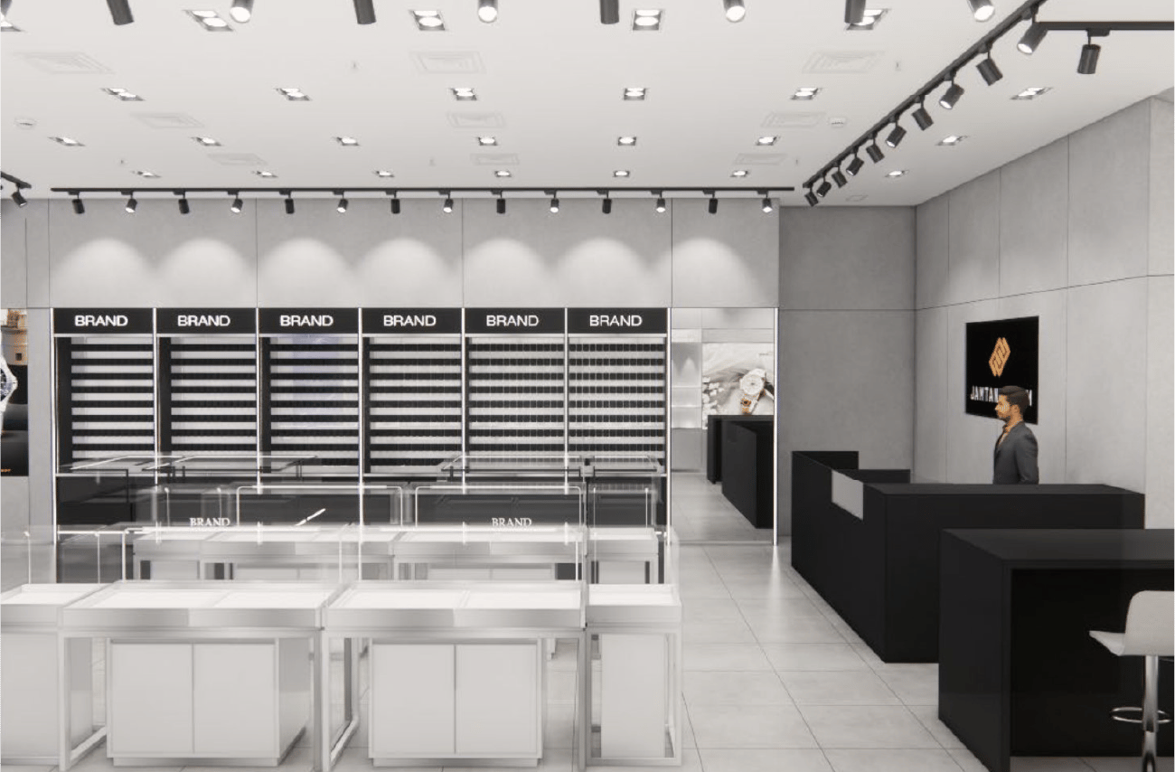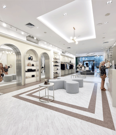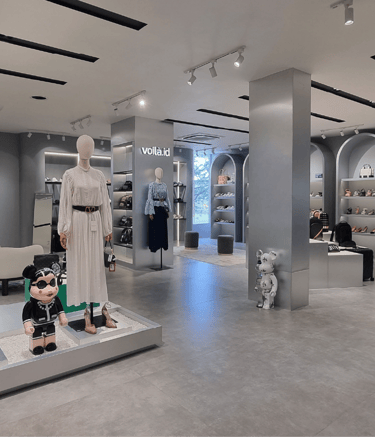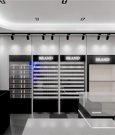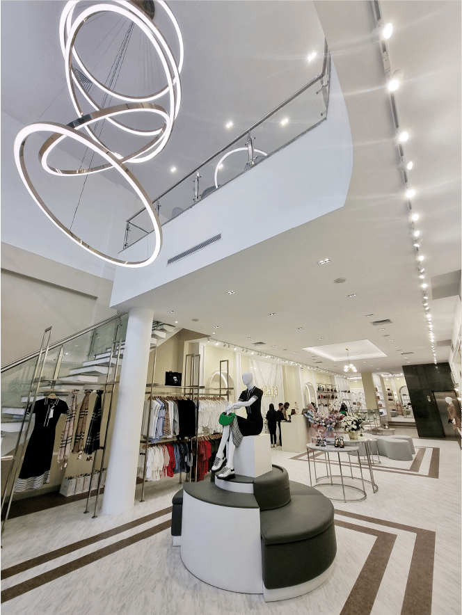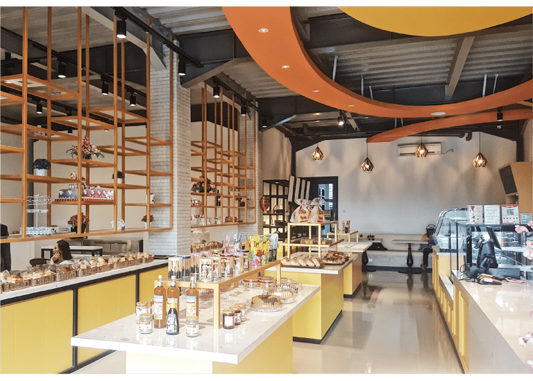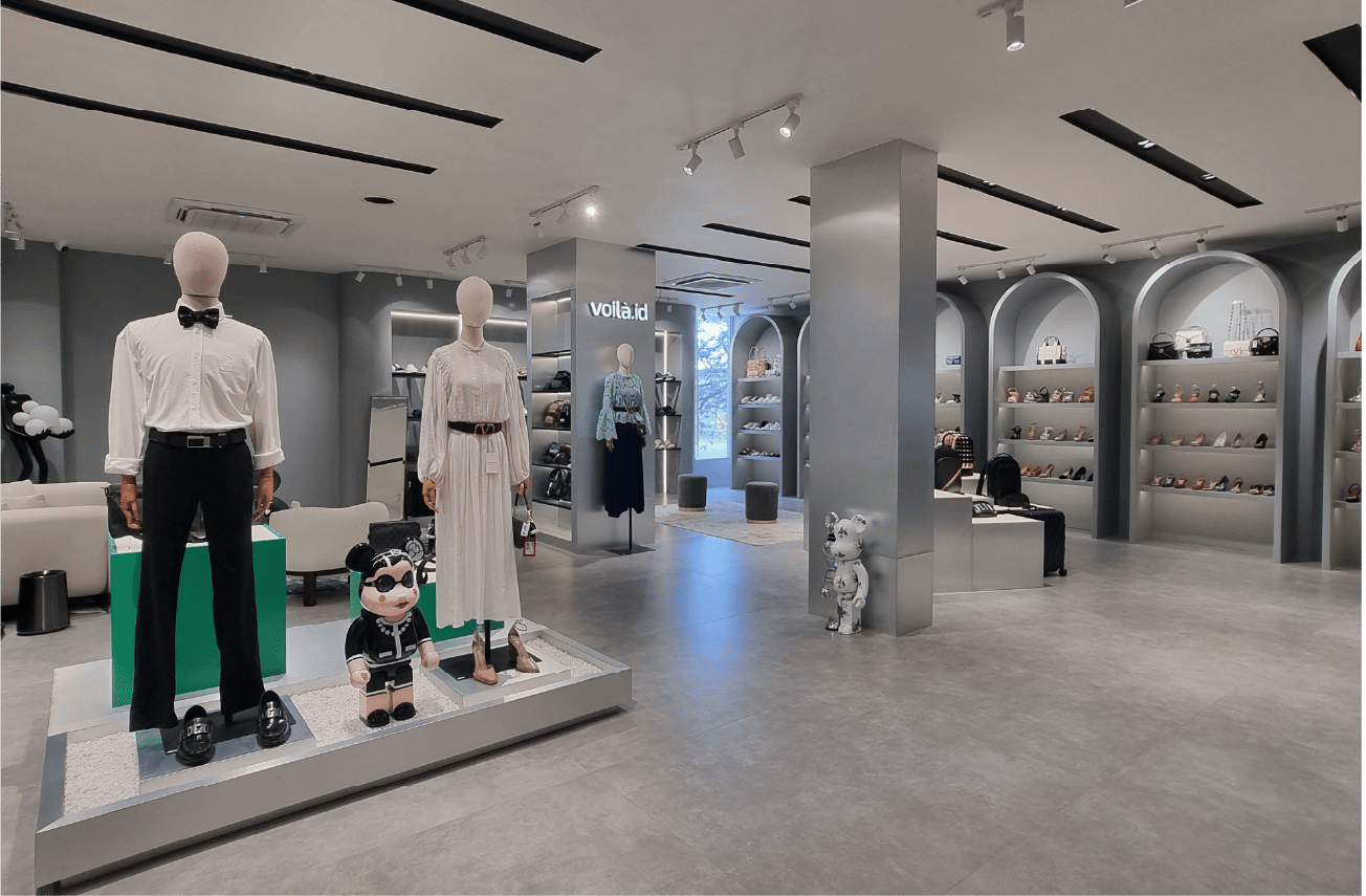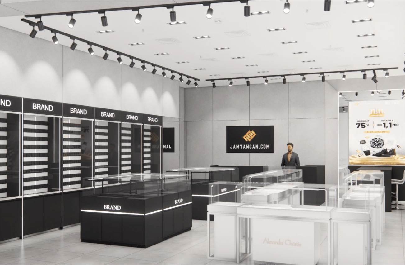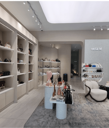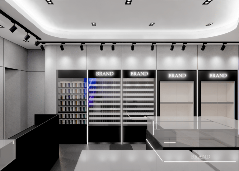 Desain interior yang mengutamakan tata letak produk yang menarik dan nyaman, membantu meningkatkan pengalaman belanja pelanggan dan menarik perhatian di setiap area ritel.