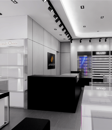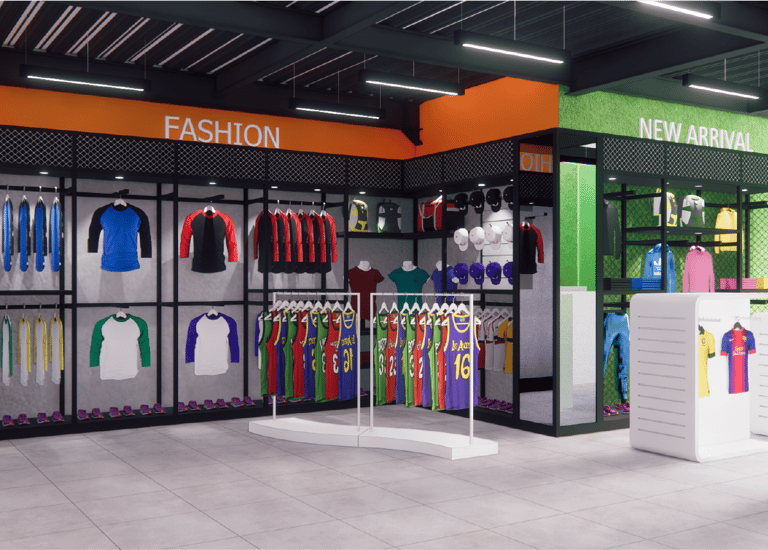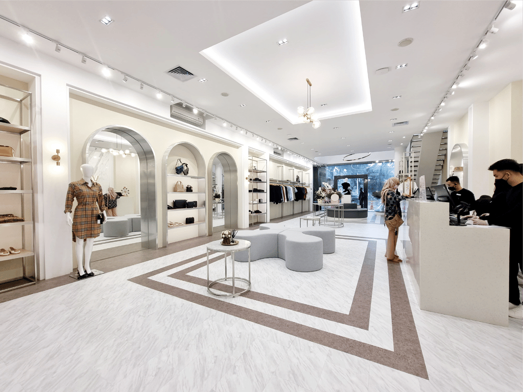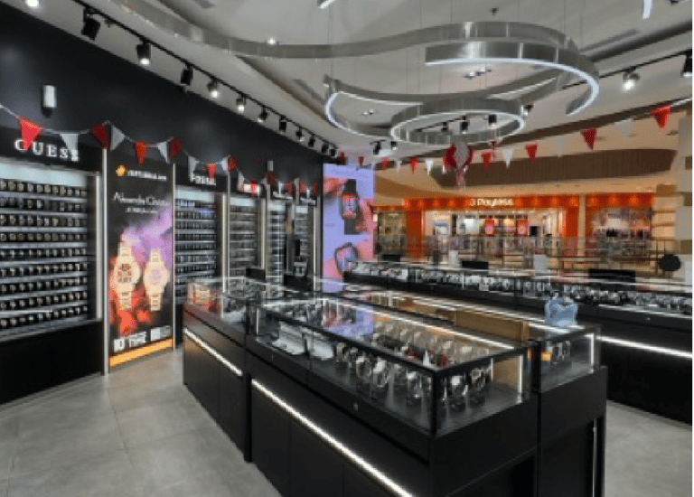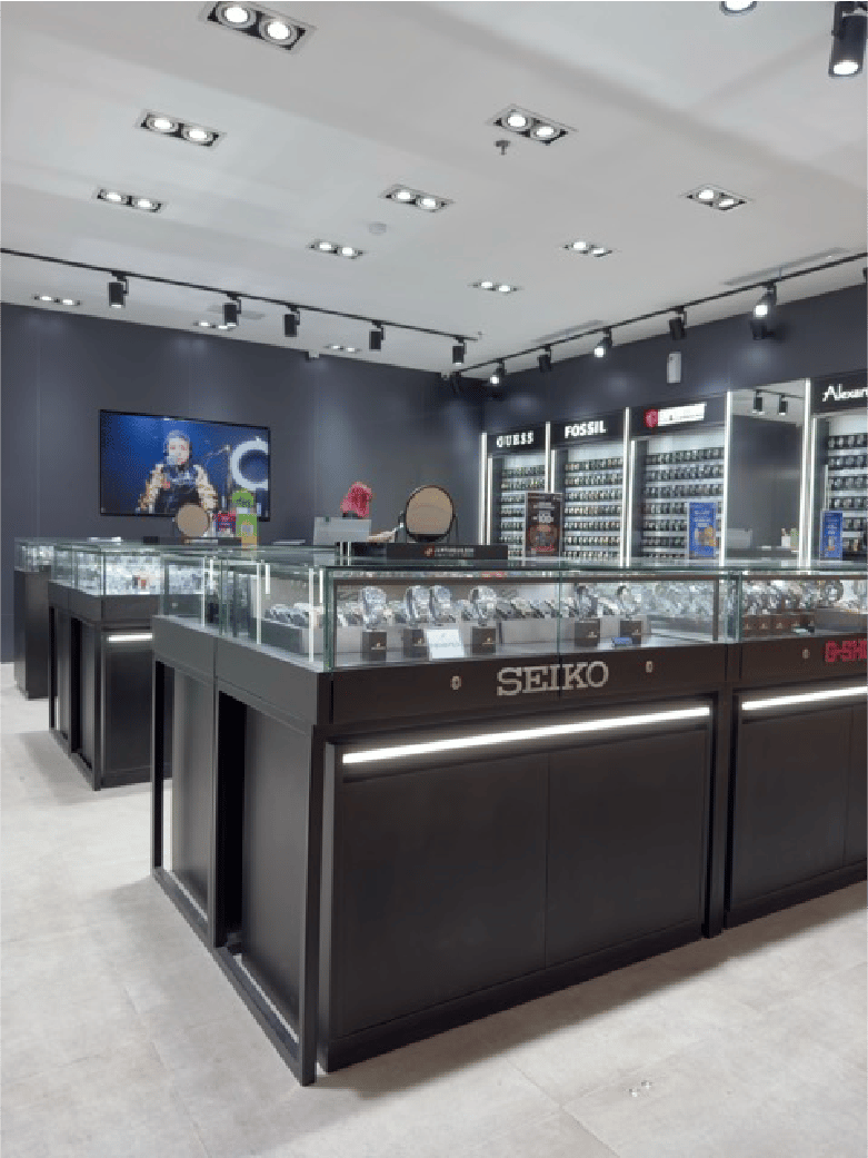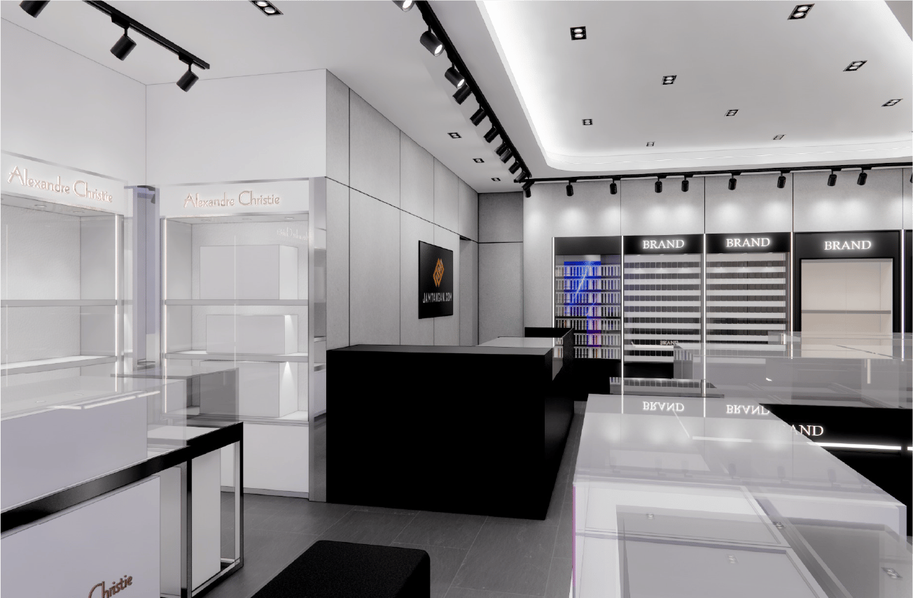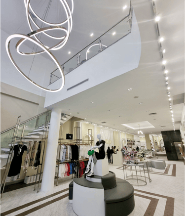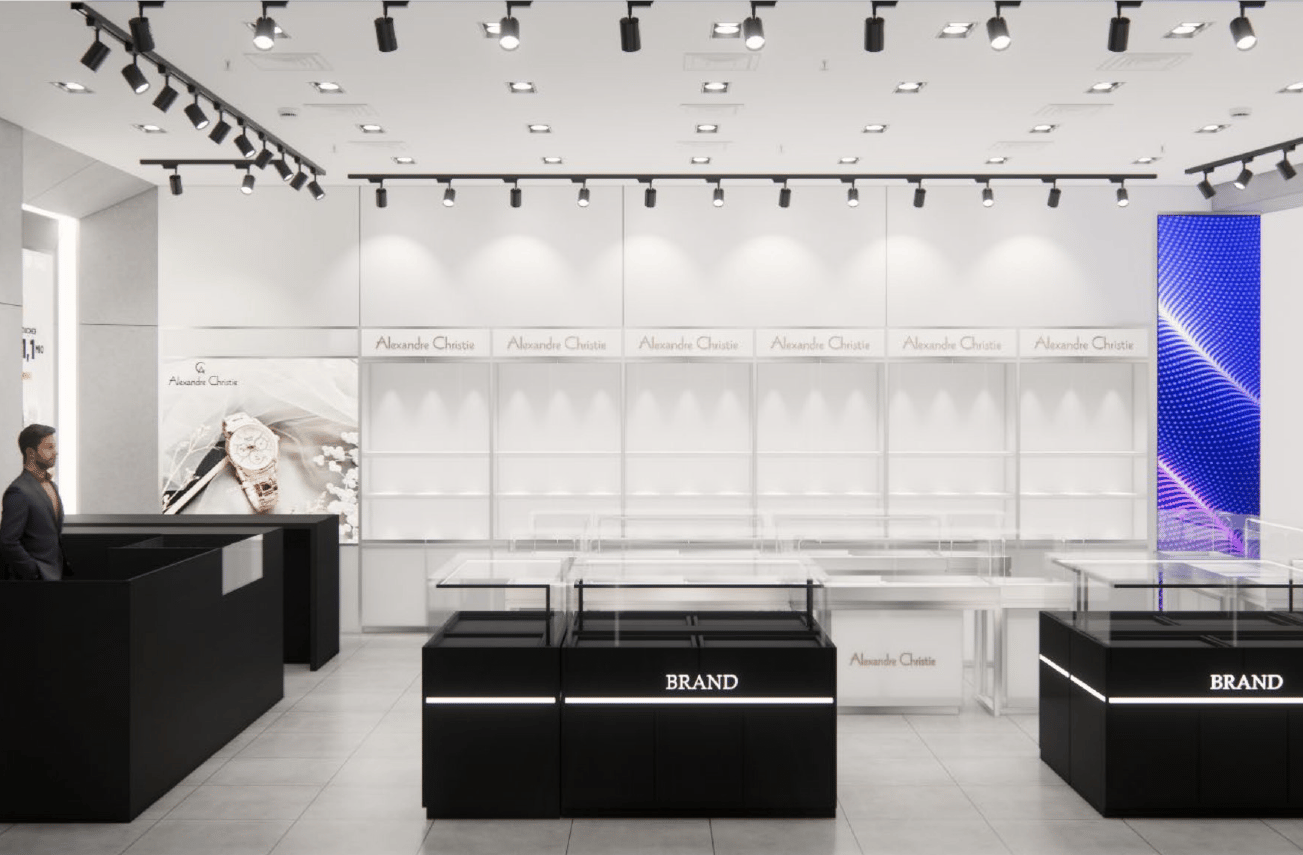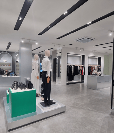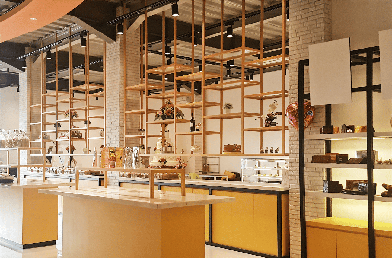 Desain interior yang mengutamakan tata letak produk yang menarik dan nyaman, membantu meningkatkan pengalaman belanja pelanggan dan menarik perhatian di setiap area ritel.