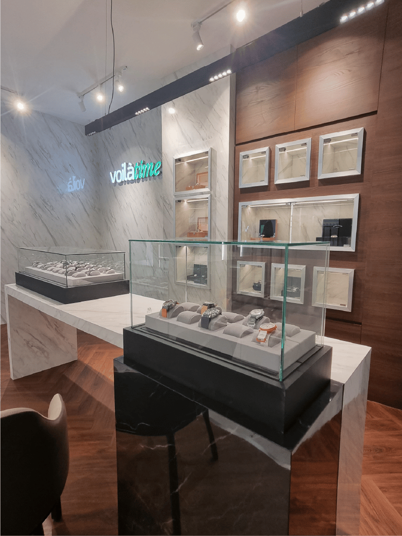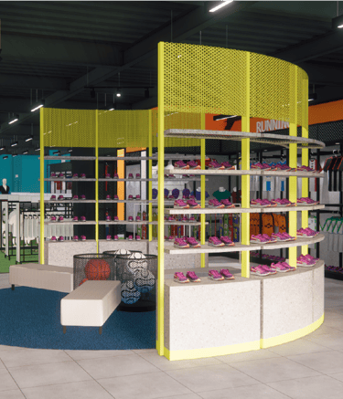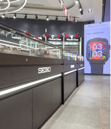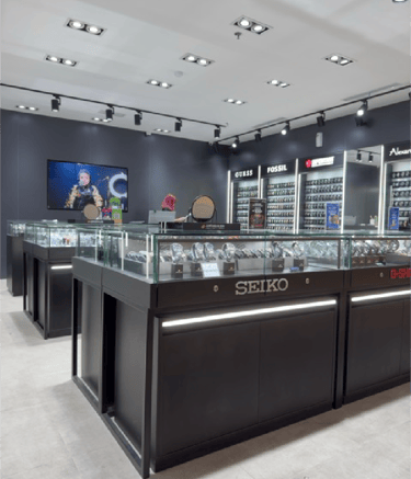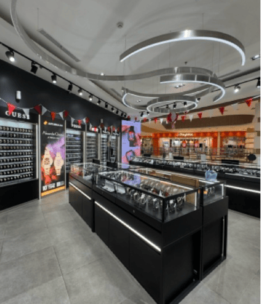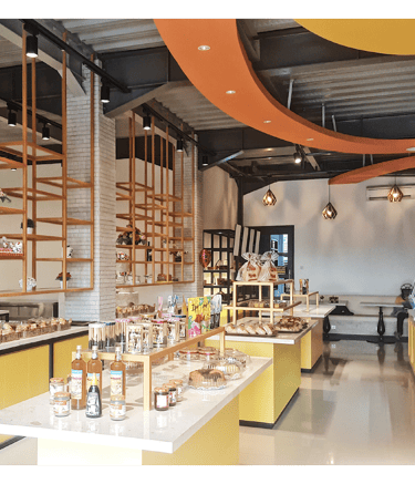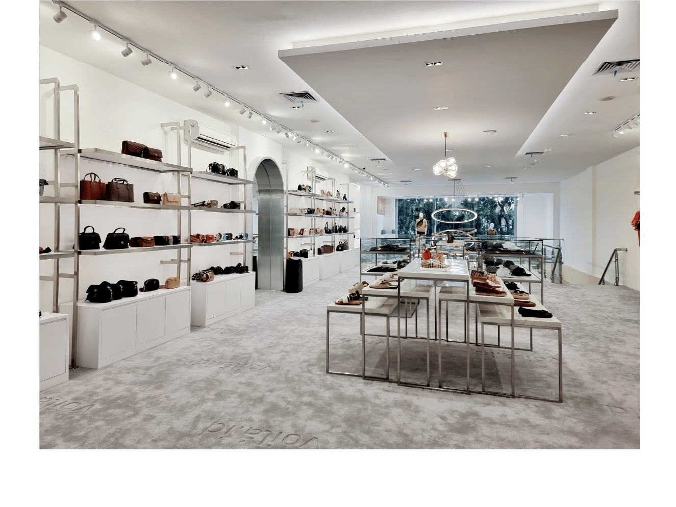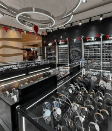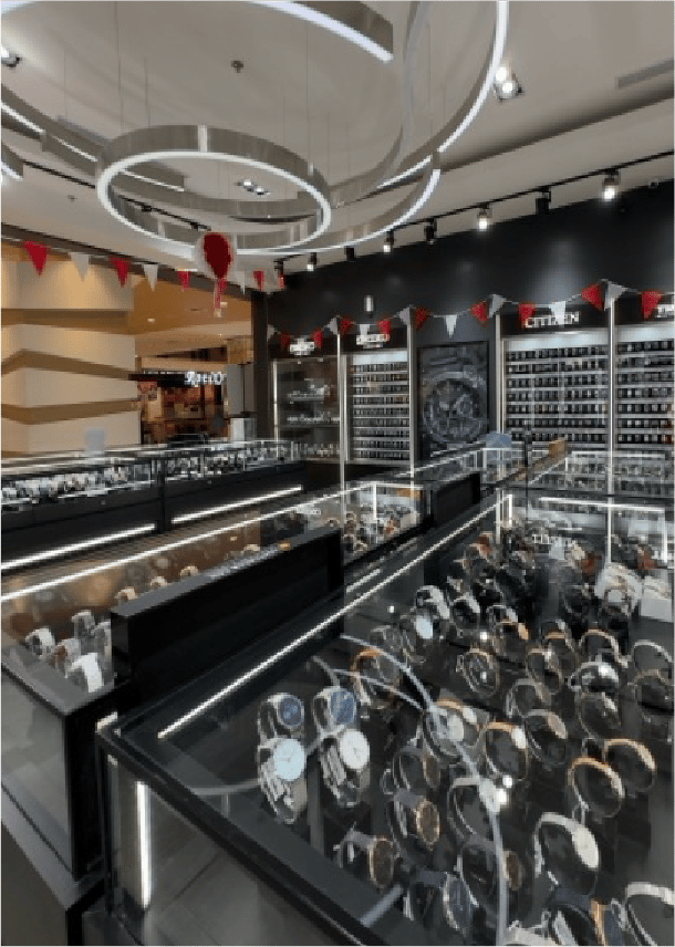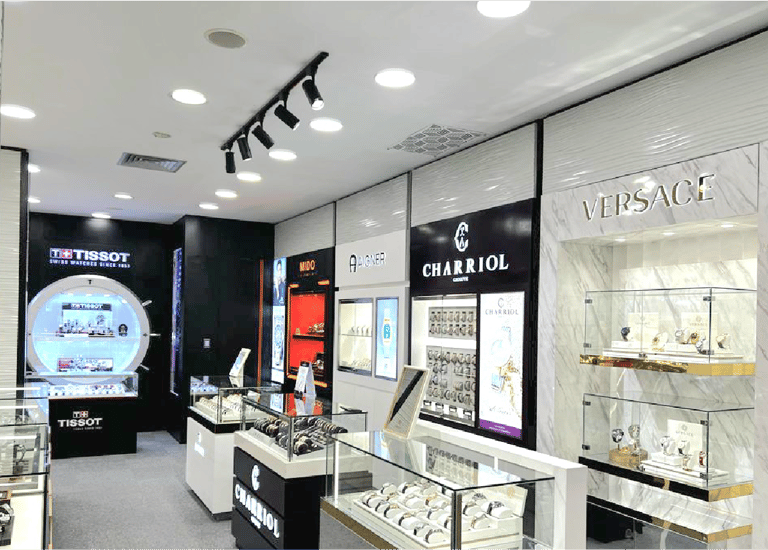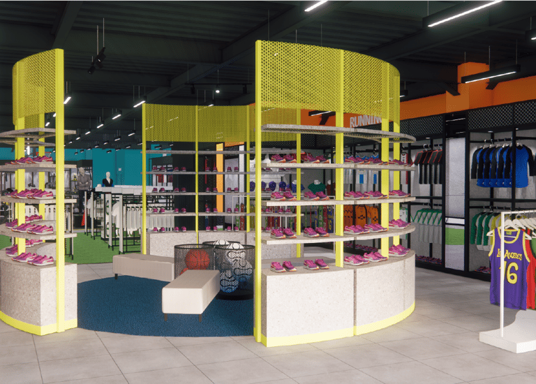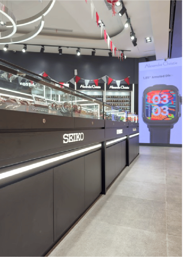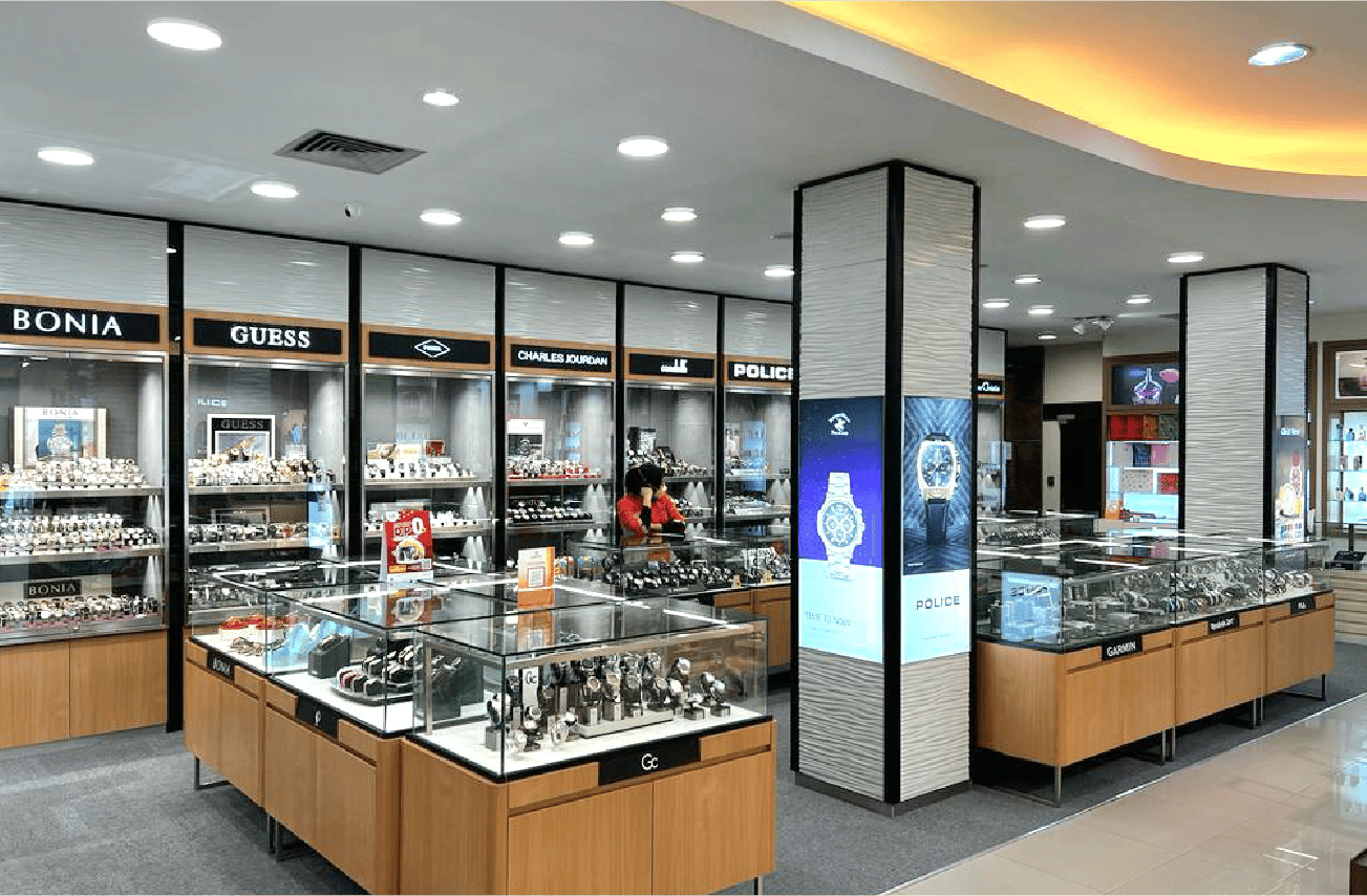 Desain interior yang mengutamakan tata letak produk yang menarik dan nyaman, membantu meningkatkan pengalaman belanja pelanggan dan menarik perhatian di setiap area ritel.